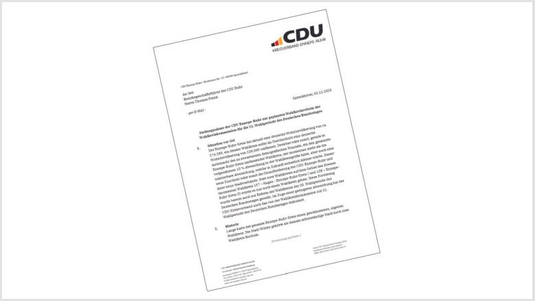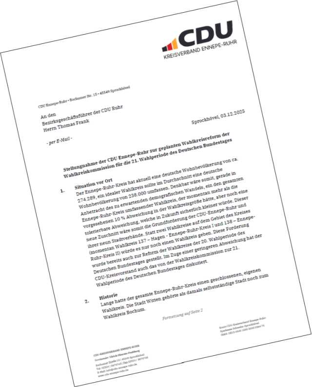 Die CDU Ennepe-Ruhr ist seitens der CDU NRW ebenfalls um eine Stellungnahme gebeten worden. Diese wurde in der Sitzung des CDU-Kreisvorstandes am 3. Dezember einstimmig verabschiedet und übersendet.